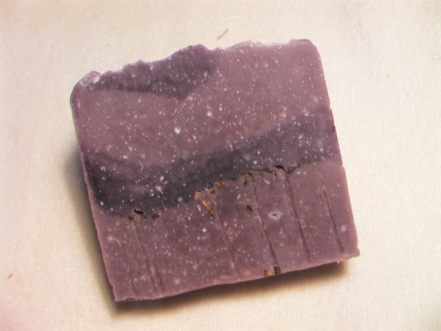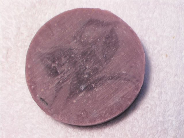 這款溫和的薰衣草皂,特地添加對過敏性肌膚友善的紫草浸泡油和薰衣草粹取液及精油,足足添加了2%薰衣草精油,但入模後第四天那耶穌嬰兒時期像天堂般的味道淡了,相信薰衣草的精華仍完封在皂寶寶裏。加入浸泡兩個月的萃取液之後,突然皂化加速,入模有點措手不及,留下一些氣泡與洞洞,尤其是那隻無辜的熊熊,請薰比多包含。還好油染的紫是令人賞心悅目的,果真符合紫薰的幸運夢幻色調。