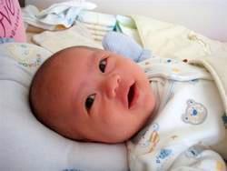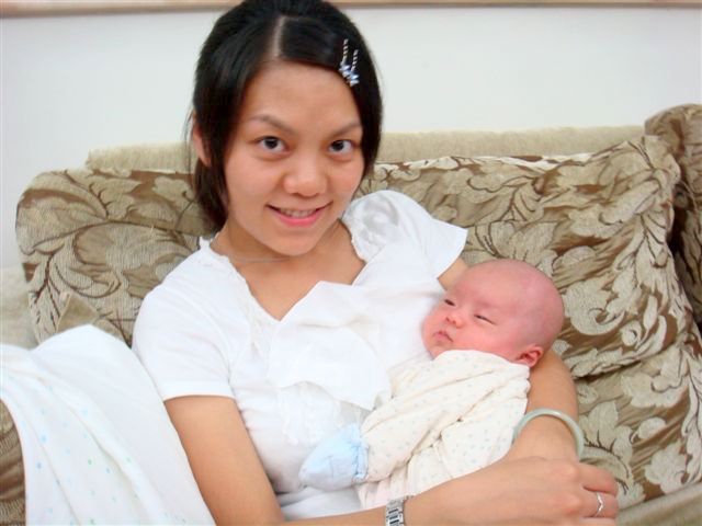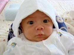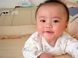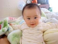 滿七個多月的小胖胖,和媽咪一樣有一對超大電眼,會自己坐坐和翻翻,已開始初嚐副食品的滋味。