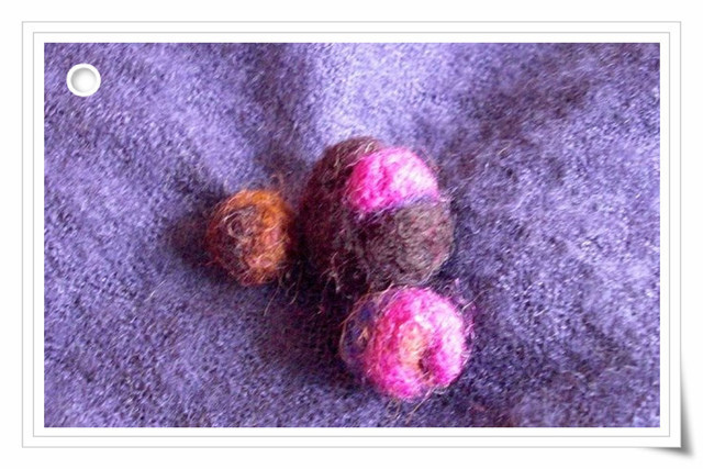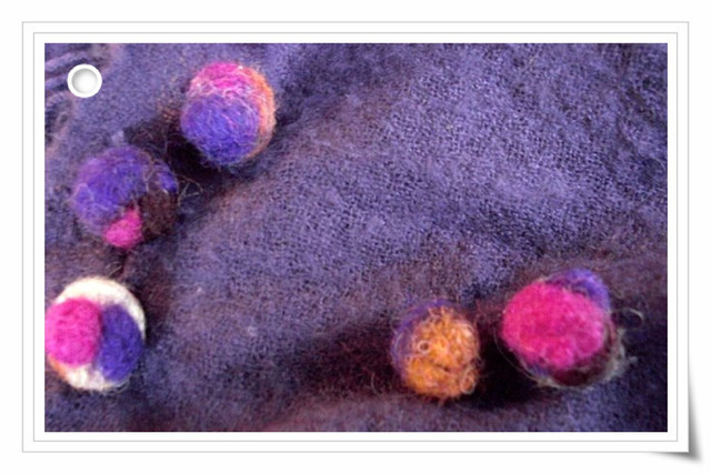 今年冬天冷的日子特別多,翻出這一條紫圍巾,心疼的撫摸創痕,突然靈機一動,或許我的羊毛氈可以派上用場…