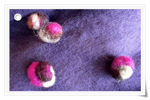 是的,就是用手用針搓搓小毛線球再逢上小漏洞…一開始,保守的想用接近的紫色和咖啡色遮掩就好,