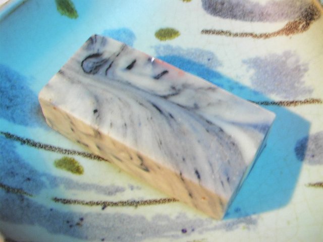 總而言之,樸實中的一點華麗,那是一種安適中的熱情,平淡中的不甘平淡!在製作這款皂的時候,夜已寂靜,唯巴哈無伴奏大提琴幽遠的陪著我,空寂中有一點一點熱情在燃燒著,絲絲縷縷希望在迴蕩著...偶成這嘔心泣血之作,是一方大理石蛋糕,還是一介壽山石印...或只是秋天的河流一時激漩起的一片楓紅...