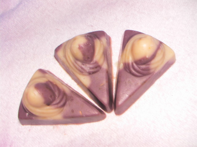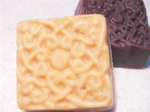 第三款,點皂率第一名的乳果甜心,特地被蓉媽要求添加護敏的洋柑橘,因怕整朵入皂容易發霉或是像蟲蟲;所以,特地研磨成粉入皂,純潔的乳果甜心遇到洋柑橘,多了一股原野的芳蹤。