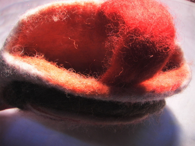 很開心這是這輩子的第一個自己雙手作出來的包包,雖然不盡完美,但獨一無二,用得很賞心悅目。更開心的是,水氈羊毛氈可以讓YamaMa作的手工皂派上用場,想當初的高級純羊毛衣料,用的正是純橄欖皂和馬賽皂,試想如用化學洗劑搓洗1~2個小時,不想很快變富貴手也難吧,尤其是作品有了一些不天然的殘留物。
