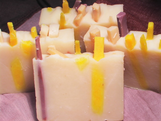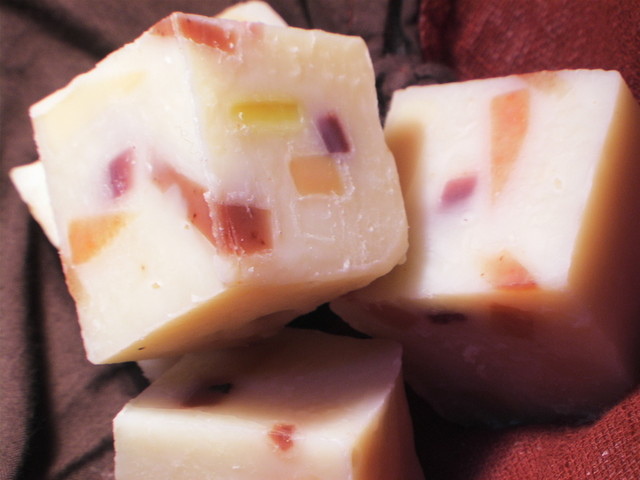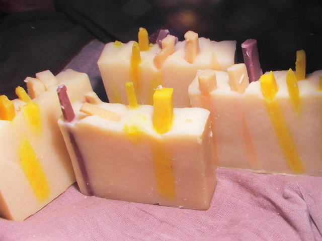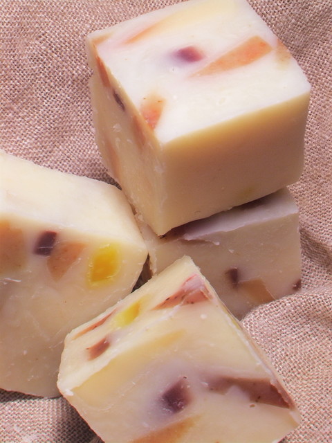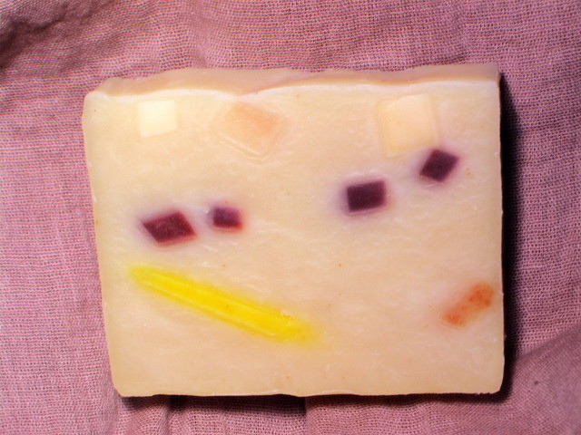 不厭其煩的試竹薑和本島薑…等洗感和添加到皂露的澄澈度,還有薑汁的添加比例恰到好處激發薑的功效又不能太刺激,更是花了很大的功夫尋找生薑精油的蹤跡。最後還是決定使用活水源天癒專利農法輔一級及的老薑,更添美好薑來的無線生機能量。細細切入一些皂絲,隱約呈現薑絲的感覺,也增加美好薑來的繽紛和溫暖滋潤感受。