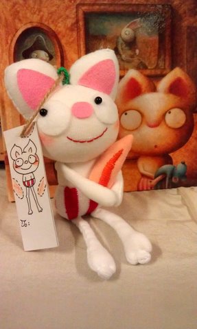 等了兩個多月,短耳兔娃娃終於完成囉,真是太可愛囉,還有巧心手縫活動的兔耳朵麵包,還有手繪的卡片弔牌。