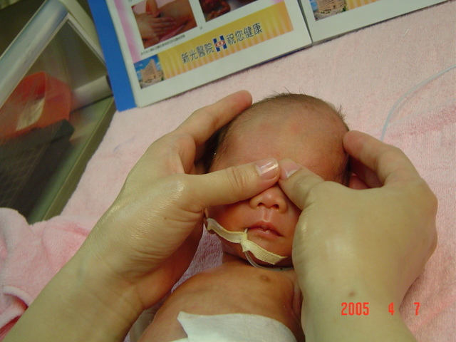 開始幫小山按摩是在新光醫院早產兒的加護病房,還在保溫箱中的Yama滿1600g之後,在護士楊阿姨的建議下,開始進行嬰兒按摩。因為太舒服了,通常小Yama不是表現出幸福而專注感受的表情,就是舒服的睡著了,即使是小小的貝比都可以感受到掌心的愛的撫觸和溫暖,而回報以甜蜜的熟睡和健康的成長。而相對的按摩者,也能同步感受到愉快和放鬆的互動。