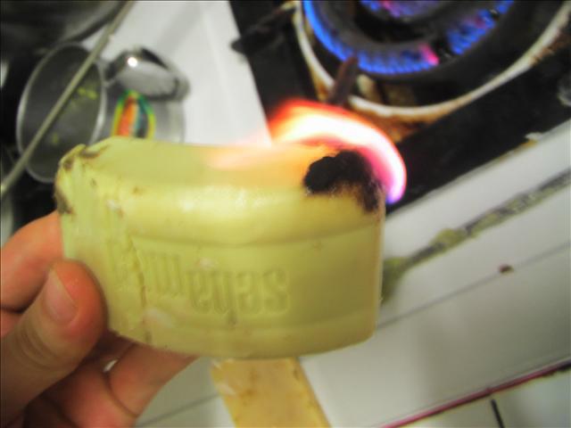 膽子大一點、心臟強一點的朋友,可以試試這個火皂燃燒法。(參考:中日多家天然洗劑試驗法)