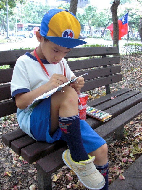 才說畫畫是我的生命的小山,才隔一天,不但沒有打消念頭反而意志又更加堅定囉,今日回家拿著他的畫作和手作小書興沖沖的大聲對我說:媽咪,我要當大畫家!