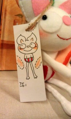等了兩個多月,短耳兔娃娃終於完成囉,真是太可愛囉,還有巧心手縫活動的兔耳朵麵包,還有手繪的卡片弔牌。
